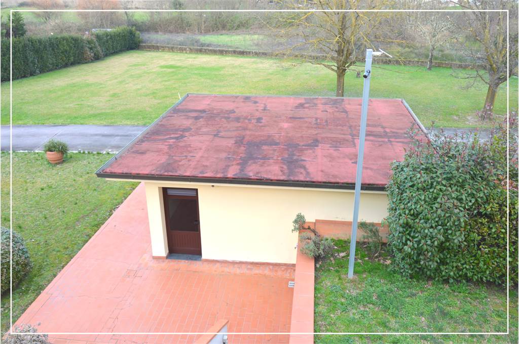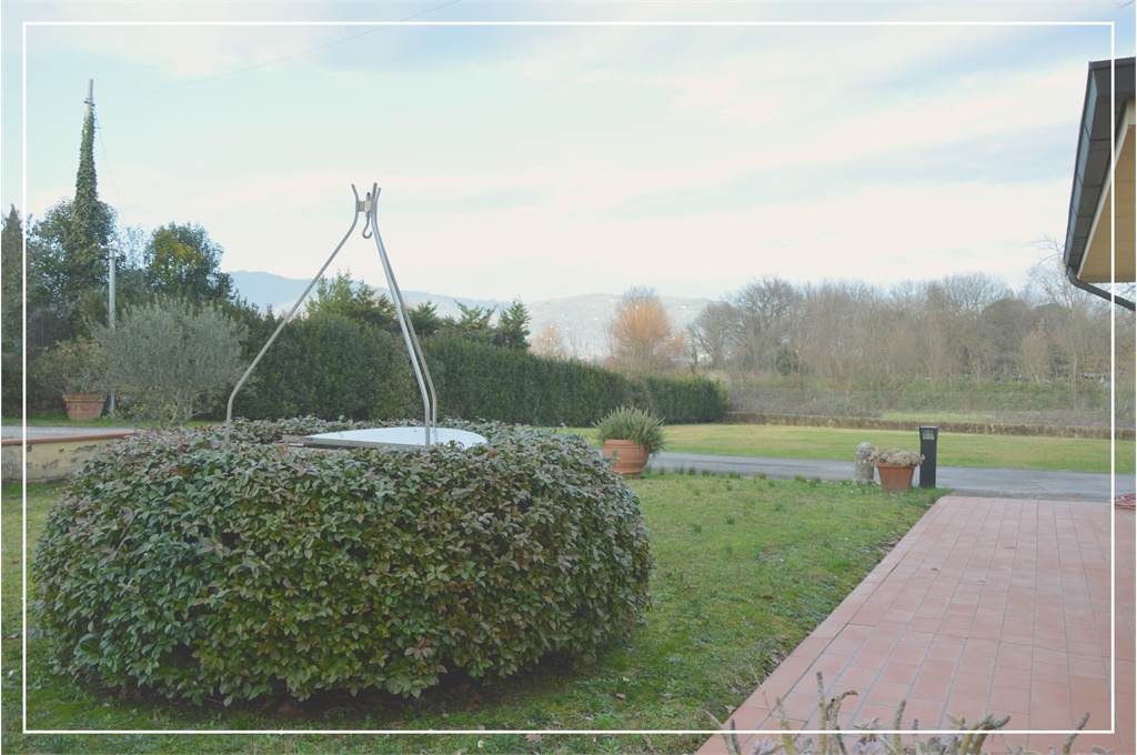 Borgo a Buggiano, zona Stadio, proponiamo la vendita di una porzione di Villa in Bifamiliare di eccellente finitura ed ottima caratterizzazione architettonica, corredata da arioso ed ottimo giardino esclusivo di Mq.2.200, dehors attrezzato e comodo ingr. carrabile esclusivo. Sviluppo abitativo complessivo di 150 mq ca., di rara completezza ed impatto, ben distribuito su tutto il primo ed ultimo piano del fabbricato. Al P.1°.: ampio ed accogliente ingresso, cucina abitabile, soggiorno e sala da pranzo con sfogo sull'ampio balcone perimetrale, disimpegno zona notte, 3 camere da letto, doppi servizi completi e finestrati, utilissimo ripostiglio/lavanderia con finestra. L'ampio ed esclusivo giardino di Mq.2.200, servito da un pozzo, è impreziosito da un garage doppio (Mq.40), ulteriori vani accessori per Mq.70 ca. sviluppati al piano terra del fabbricato. In dotazione: portoncino blindato, sistema di allarme, videocitofono, aria condizionata. Immobile di rara caratura ottimamente mantenuto