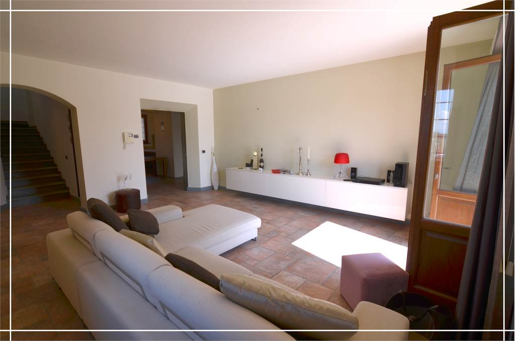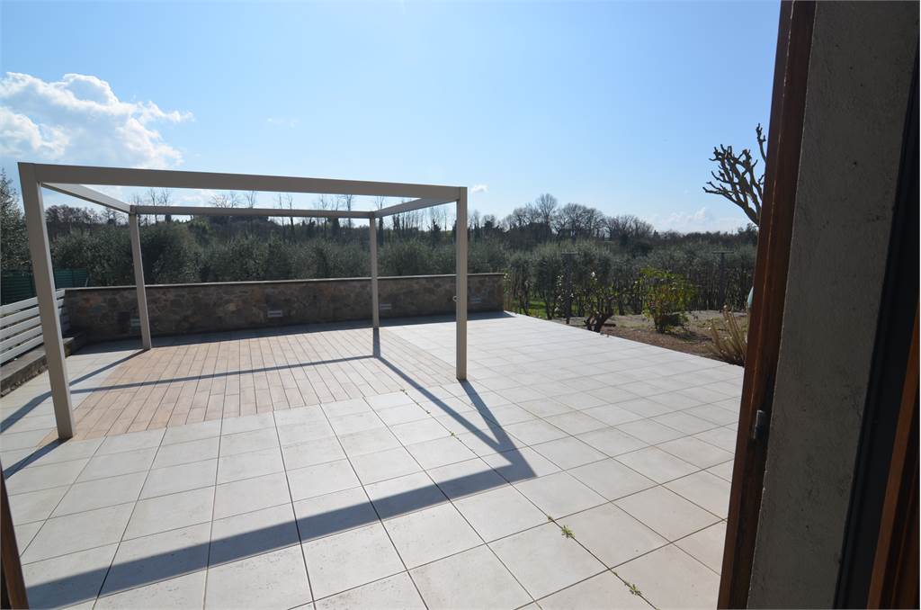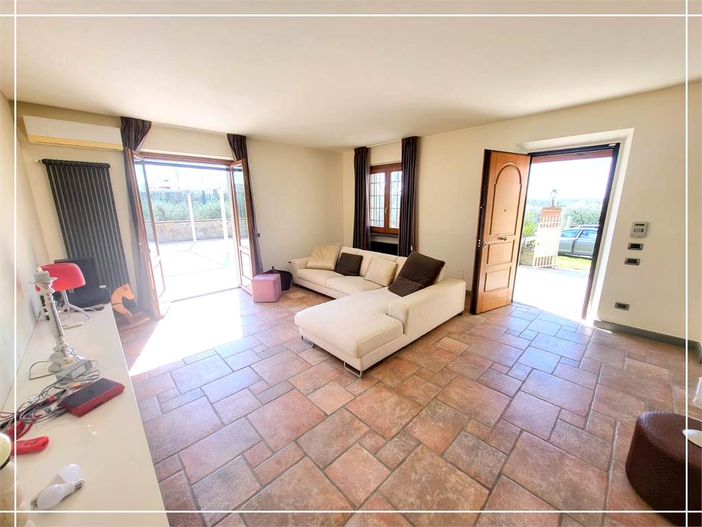 Nella prima periferia di Larciano, proponiamo in vendita una villa angolare situata in una zona residenziale e tranquilla. La proprietà si sviluppa su due piani ed è composta da un ampio salone, con accesso diretto all'esterno dove troviamo una pergola perfetta per momenti di relax, grande cucina con penisola, tre camere da letto e tre bagni. Completa la proprietà due garage, (ciascuno di 30 mq), entrambi dotati di porte basculanti automatizzate e terreno di circa mq. 5600, con 50 piante di Ulivi. La casa è dotata di impianto di allarme, zanzariere, addolcitore, impianto di condizionamento, impianto di aspirazione centralizzata. La costruzione è del 2007 con materiali di alta qualità e finiture eleganti. Ideale per chi cerca una soluzione abitativa confortevole e funzionale.