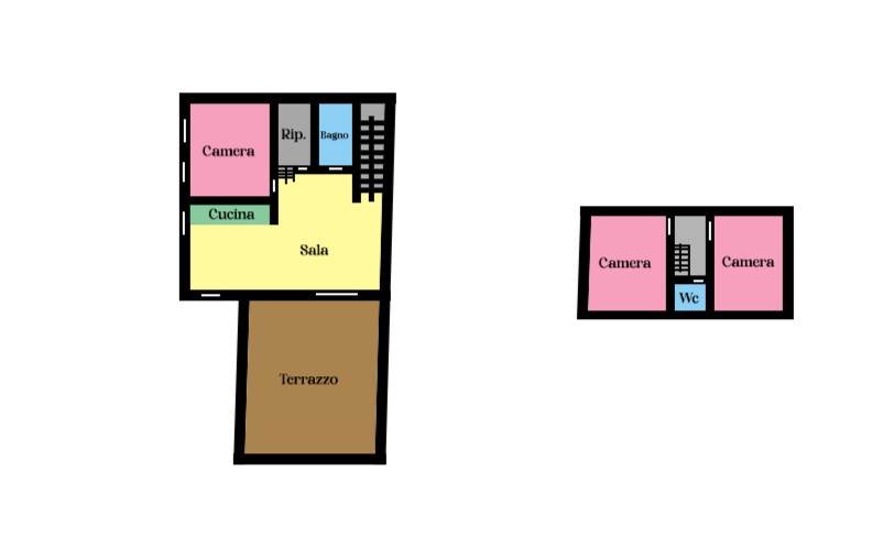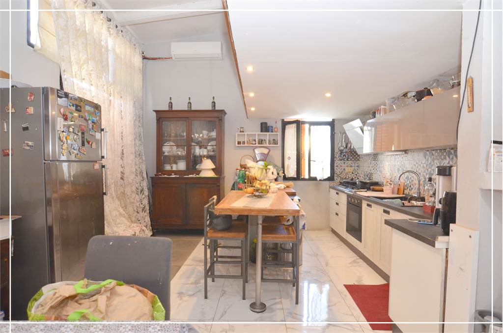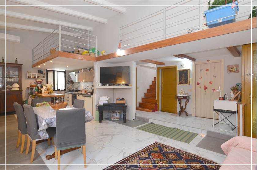 A pochi passi dalla piazza, disponiamo di abitazione indipendente. L'accesso è al piano terra, c'è un ampio spazio da utilizzare come ripostiglio o per riporre bici. Mediante delle comode scale si arriva al piano primo. Entrando troviamo l'ampia e luminosa zona giorno dalla quale si accede ad una terrazza di 50 mq molto riservata, dove godere di pranzi e cene all'aperto. Il primo piano viene completato da una camera matrimoniale, un ripostiglio ed un bagno. Proseguendo al piano superiore, troviamo altre due camere mansardate ed un bagno.