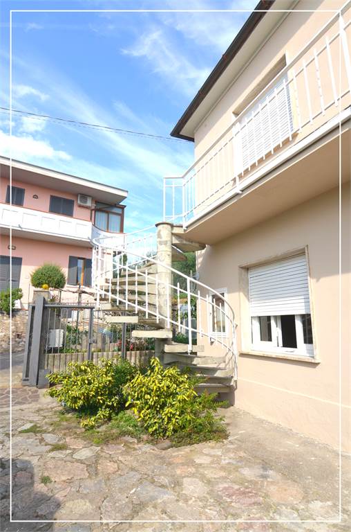 Il piano terra, con superficie di Mq.125 ca., è ottimamente suddiviso in salone d'ingresso, cucina, 3 camere e doppi servizi, oltre a giardino perimetrale, ripostigli ed ampia cantina; al piano primo, con attuale accesso da scala esterna e con superficie di Mq.75 ca., trova, ad ora, un cucinotto, un accogliente salone, una camera matrimoniale con bagno completo e finestrato, oltre ad una esclusiva terrazza panoramica, accessoriata e riservata di Mq.30, servita da ripostiglio/lavanderia. L'intera proprietà vanta un giardino carrabile di M.150 ca., accessibile da un bel cancello automatizzato. In dotazione: impiantistica evoluta con certificazioni a norma di legge; rilascio del certificato di Agibilità; nuova caldaia a condensazione; sistema di aria condizionata al piano primo